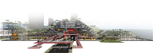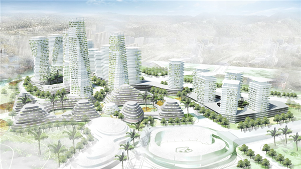 目前,全球气候变暖和生态赤字问题日趋严重。这些危机和问题来源于人类对自然生态的无度索取和破坏,以及后工业城市的消费性模式。21世纪的城市必须改变现有模式,向绿色生产型的城市转化。碧桂园梯田森林城市将交通、建筑、梯田和森林有机整合,再造森林全覆盖的第二自然、立体整合的城市形态、绿色生产的生态建筑,提出赤道环境下宜居的最佳策略,积极应对气候变暖危机,探索一种适于未来可持续发展的“生产性城市”新理念。