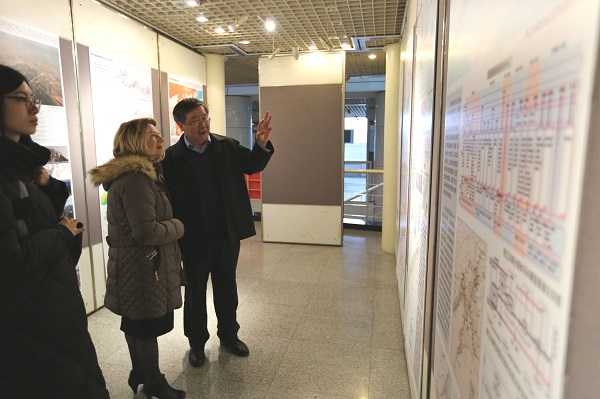 张玉坤教授向嘉宾Sofia Avgerinou Kolonias介绍建筑文化遗产保护传承信息技术实验室筹备情况