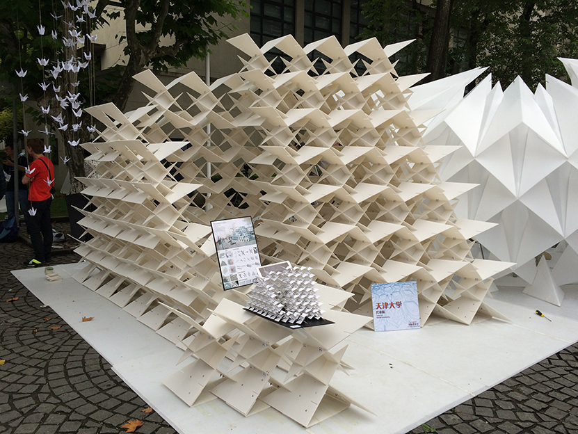 2016年6月9~10日,同济大学国际建造节暨“风语筑”PP中空板建筑设计与建造竞赛在同济大学建筑城规学院广场隆重举行。为迎接本次建造节,我院学生经过一个多月的准备与比选,8名参赛队员又在设计课老师的指导下继续方案深化,最终以作品“千只鹤”(主要指导教师:孙莉、冯琳)在同济建造节上亮相。