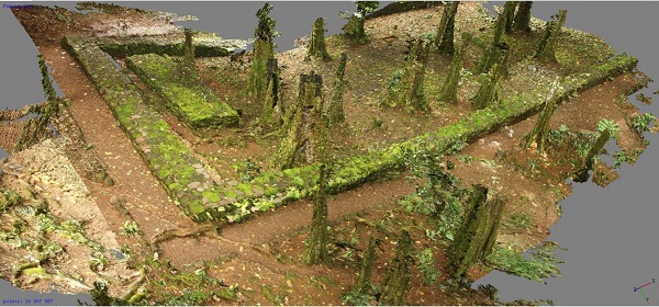 图5:无人机测绘快速获得雨林荫蔽下的古代射箭场遗址三维模型