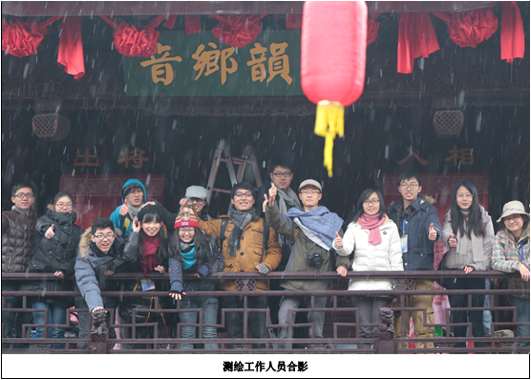 2015年1月16日-2月11日,无锡惠山祠堂群申遗测绘首开文物建筑测绘研究国家文物局重点科研基地2015年度的测绘研究工作。本次测绘工作由朱蕾、白成军联合仁爱学院教师陈书砚、扬州大学教师吴晓昕共同承担,我校2012~2014级本科生及2013~2014级研究生及山东大学本科生代表组成一支优秀的测绘队伍,充分克服严寒、作业量大、时间紧迫等困难,圆满完成国家重点文物保护单位天下第二泉庭院、淮湘军昭忠祠、尤文简公祠、钱王祠及省级重点文物保护单位张中丞庙的外业工作,大力推进无锡惠山祠堂群申遗工作进度。