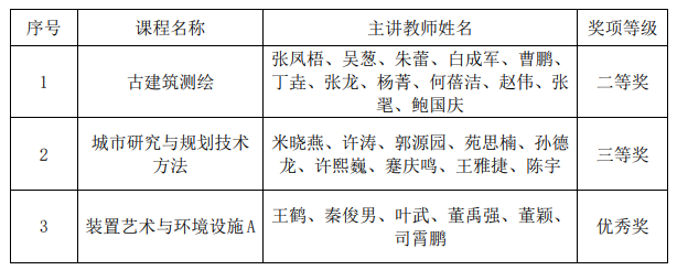 在新工科项目式课程设计大赛评选中,我院《古建筑测绘》课程荣获二等奖,《城市研究与规划技术方法》课程荣获三等奖,《装置艺术与环境设施A》课程荣获优秀奖。