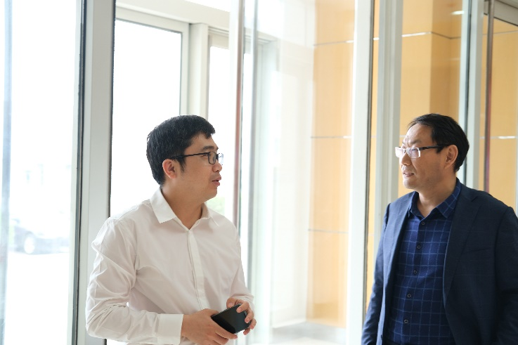 天筑建材副总宋兴与天津大学苗展堂老师在商讨现场实践课安排